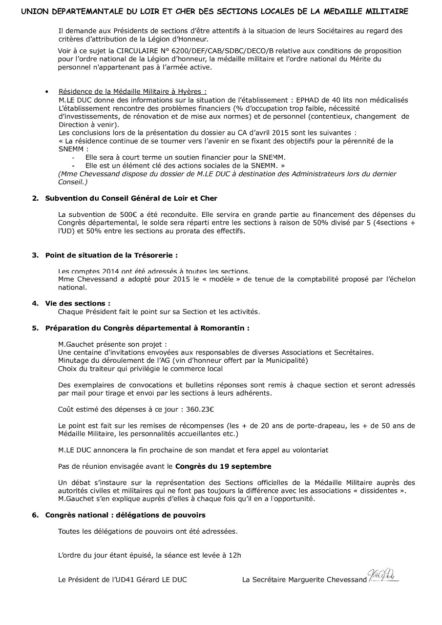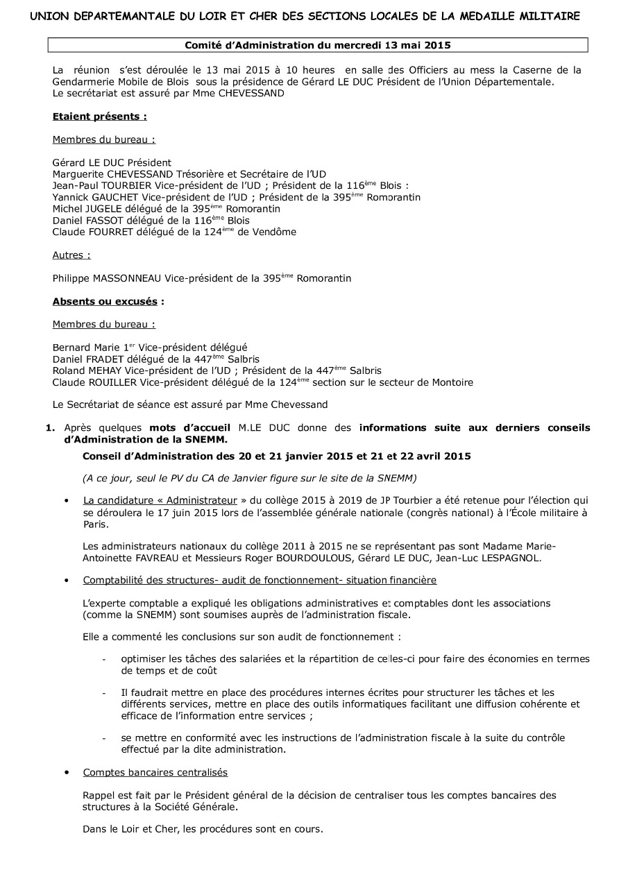 Accueil. > Union départementale. > P.V du 13/05/2015.